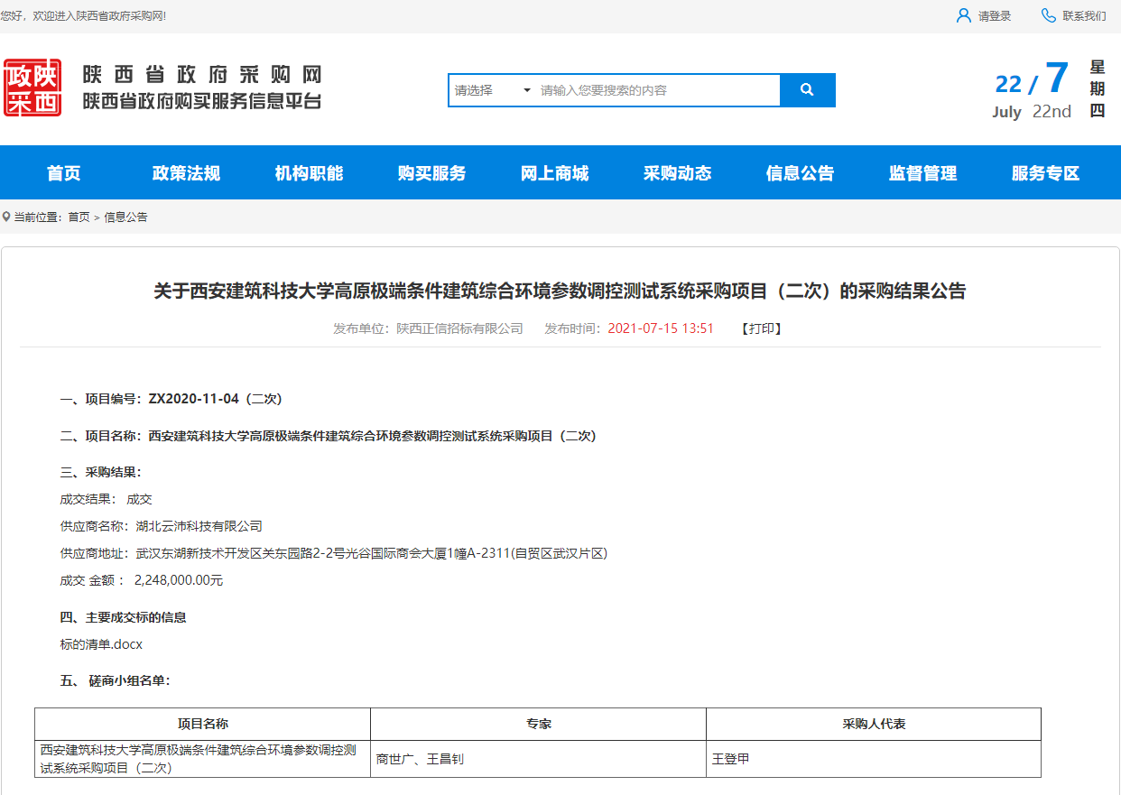 2021云沛科技中標(biāo)西安建筑科技大學(xué)高原極端條件建筑綜合環(huán)境參數(shù)調(diào)控測(cè)試系統(tǒng)采購(gòu)項(xiàng)目