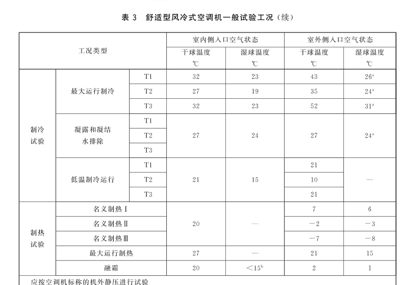 舒適型水冷式空調(diào)機(jī)部分負(fù)荷性能試驗(yàn)的工況允差和機(jī)外靜壓的允差應(yīng)符合下表中的規(guī)定。