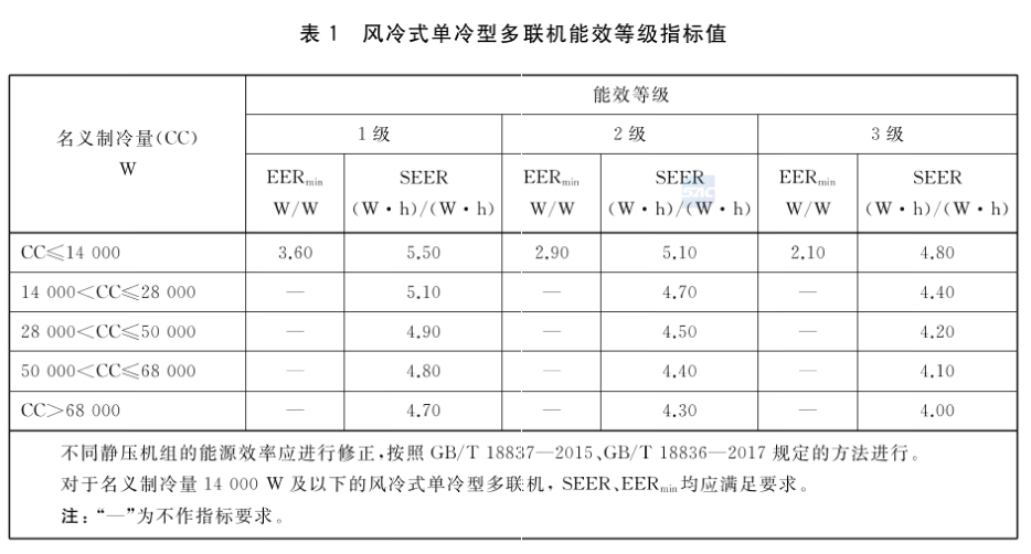 多聯(lián)機(jī)和低溫多聯(lián)機(jī)能效等級(jí)分為3級(jí),其中1級(jí)能效最高。 風(fēng)冷式單冷型多聯(lián)機(jī)根據(jù)產(chǎn)品的實(shí)測(cè)SEER進(jìn)行能效分級(jí),各能效等級(jí)實(shí)測(cè)SEER不應(yīng)小于表1規(guī)定 閱讀全文 -