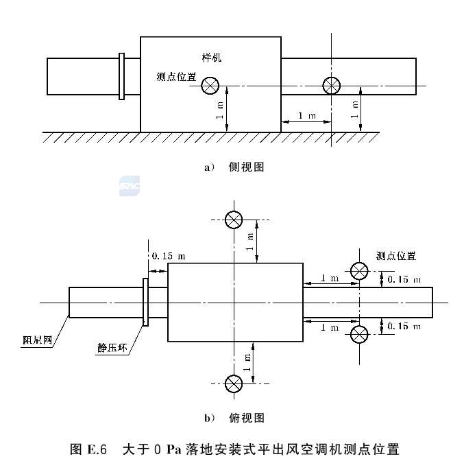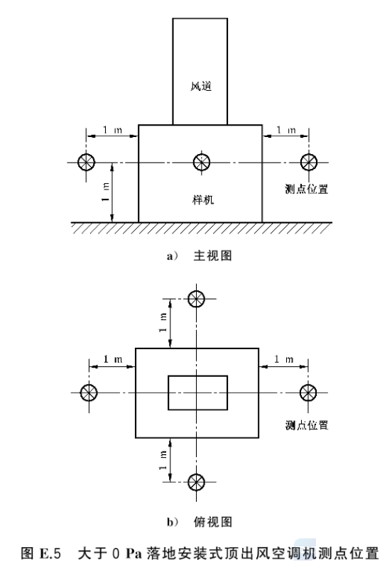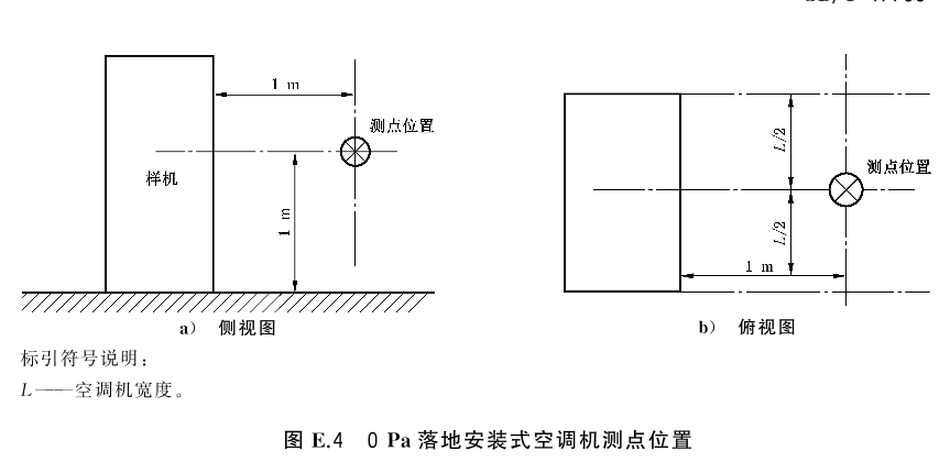名義制冷(熱)量大于或等于40000W的空調機噪聲測定場所應為一個反射平面上的近似自由場,應確保被測空調機的A計權聲壓級噪聲與背景噪聲之差大于6dB(A),且測試環(huán)境的聲學要求還應滿足GB/T 3767一2016中4.3的規(guī)定。
